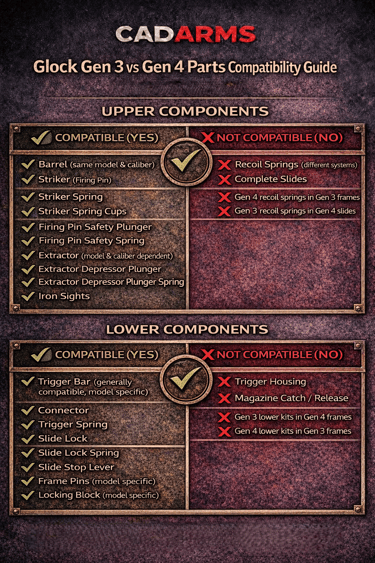 Glock Gen 3 vs Glock Gen 4 Interchangeable Parts Guide (Upper & Lower Compatibility)